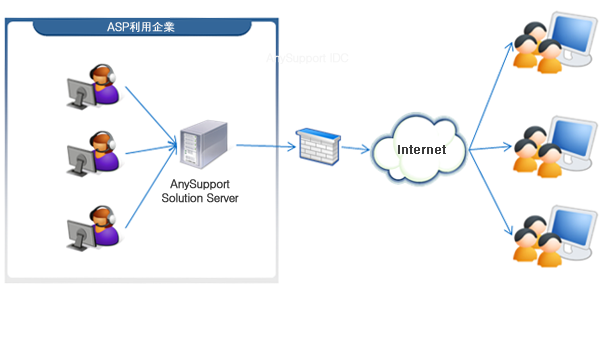 自らの遠隔サポート企業内部ネットワークに遠隔サポートソリューションを購買/設置して,直接管理/運営企業内部の保安および安全性が特に重要視される公共機関/大企業/金融/IT企業に適合専門的な遠隔サポートをお客様に提供